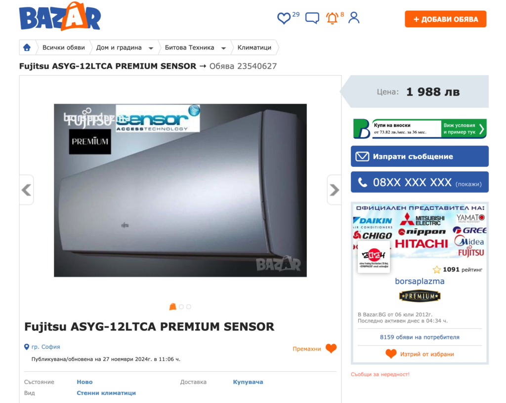Напротив – в този сайт ще ви разкажа как направих грешката да “пробвам да купя” климатик от този некоректен търговец.