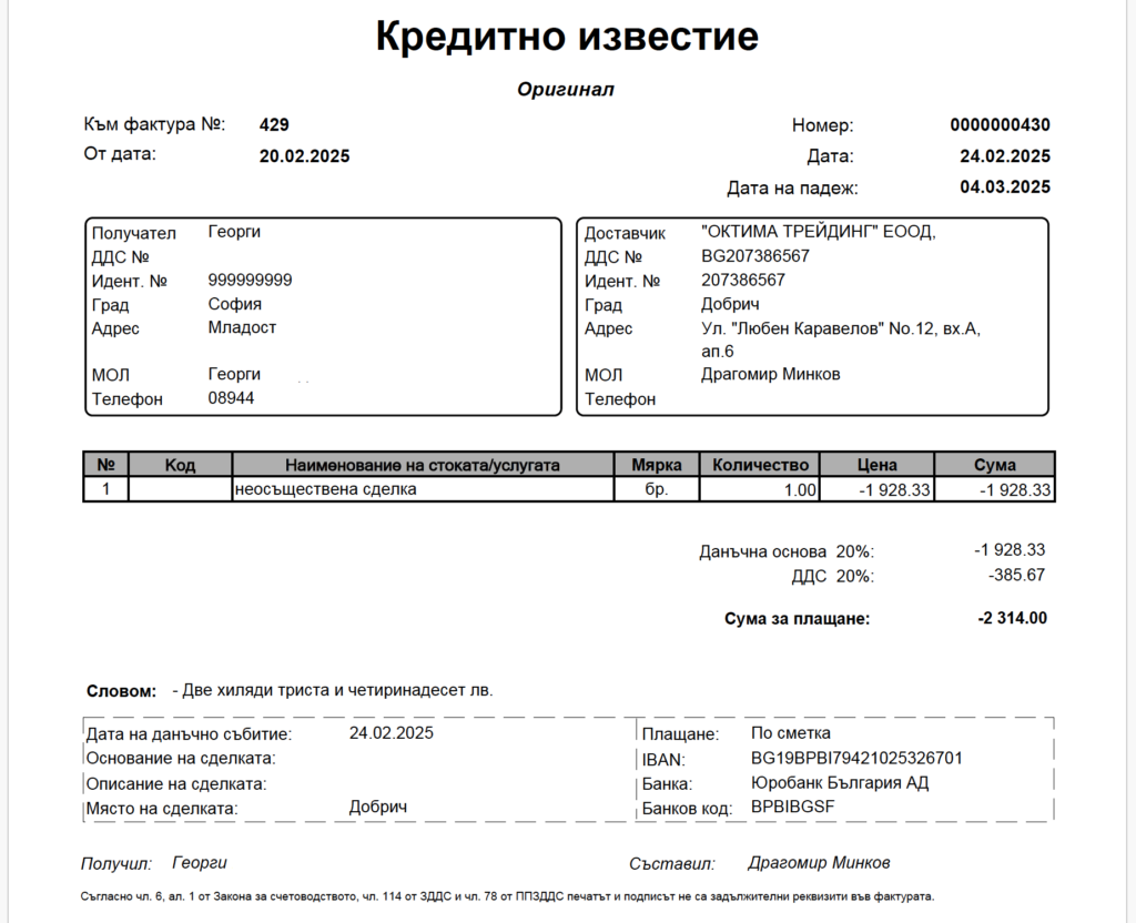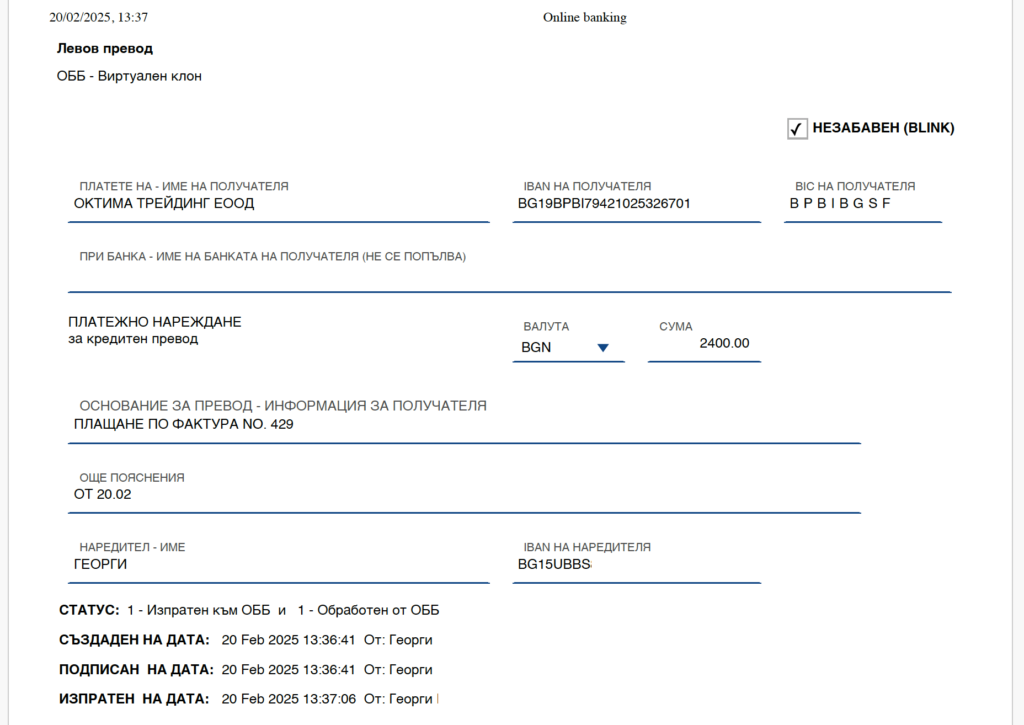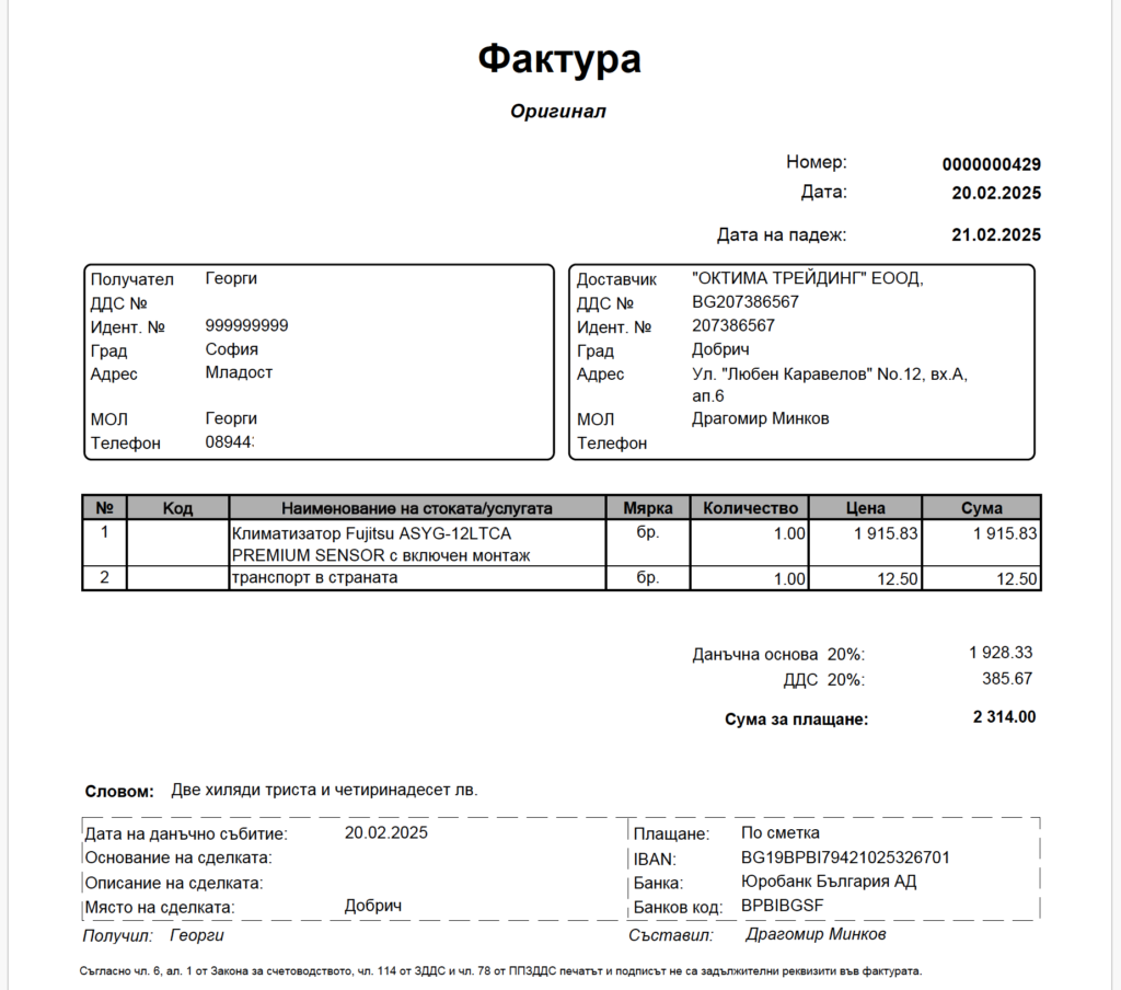 20 Февруари 2025: Свързах се с “продавача”, той първо ме убеждаваше да купя друг който уж бил новия модел на този което не е вярно и му казах, че искам точно този. Изпрати ми проформа фактура (изтрил съм личните ми данни, неговите са публични, скоро ще добавя форма за връзка с мен ако имате подобна история да споделите).